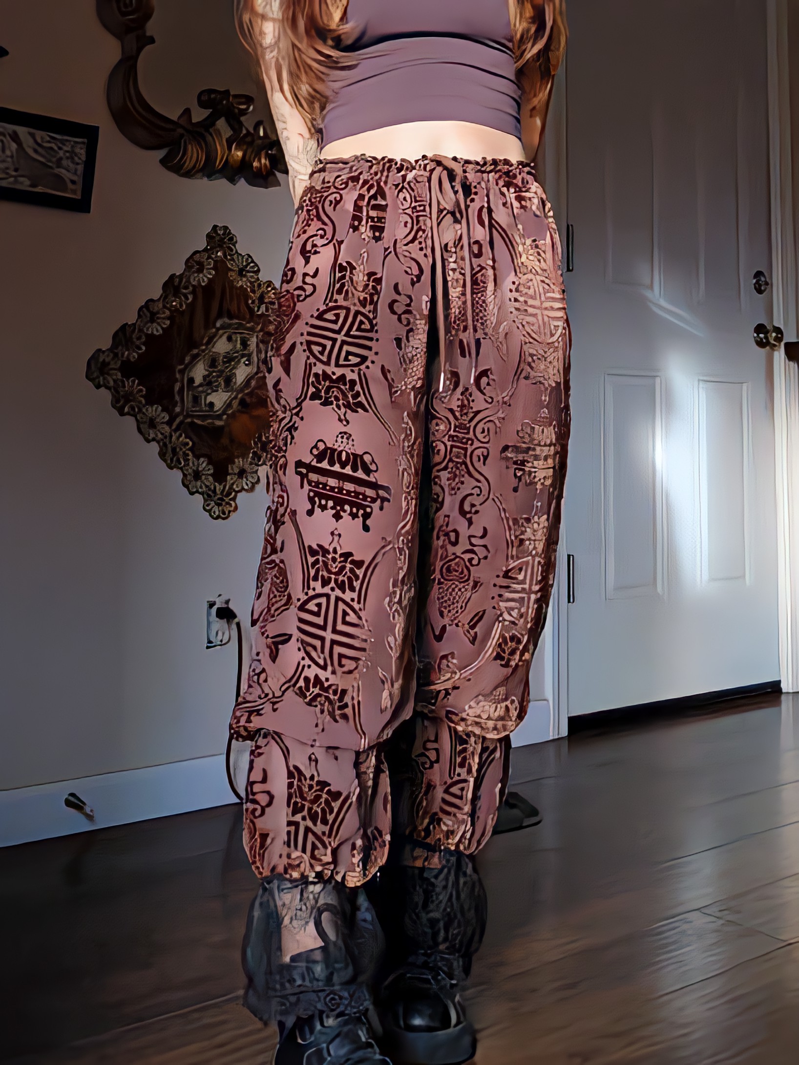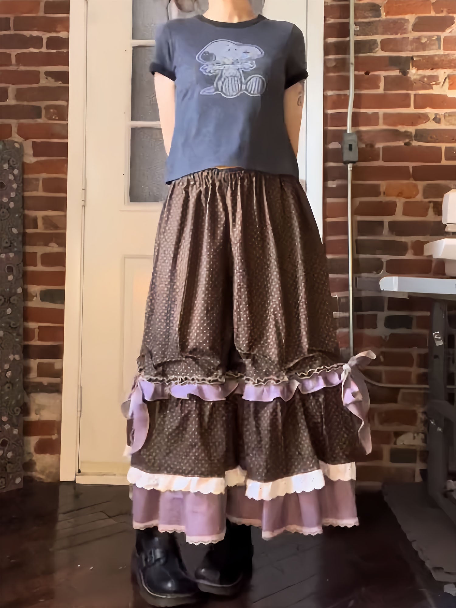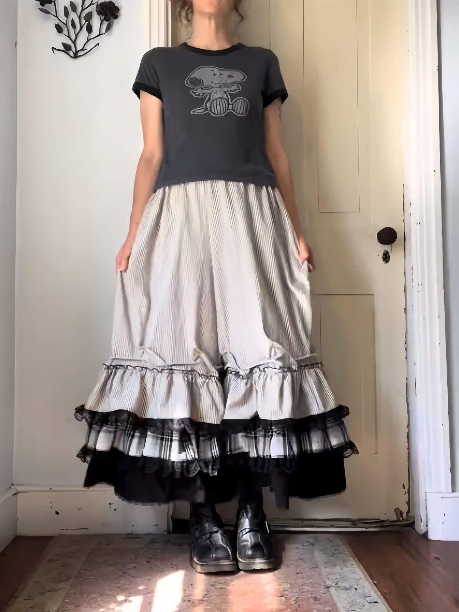Gray Plaid Flannel/Floral Super Flared Wide Ruffle Maxi Bloomers Pants