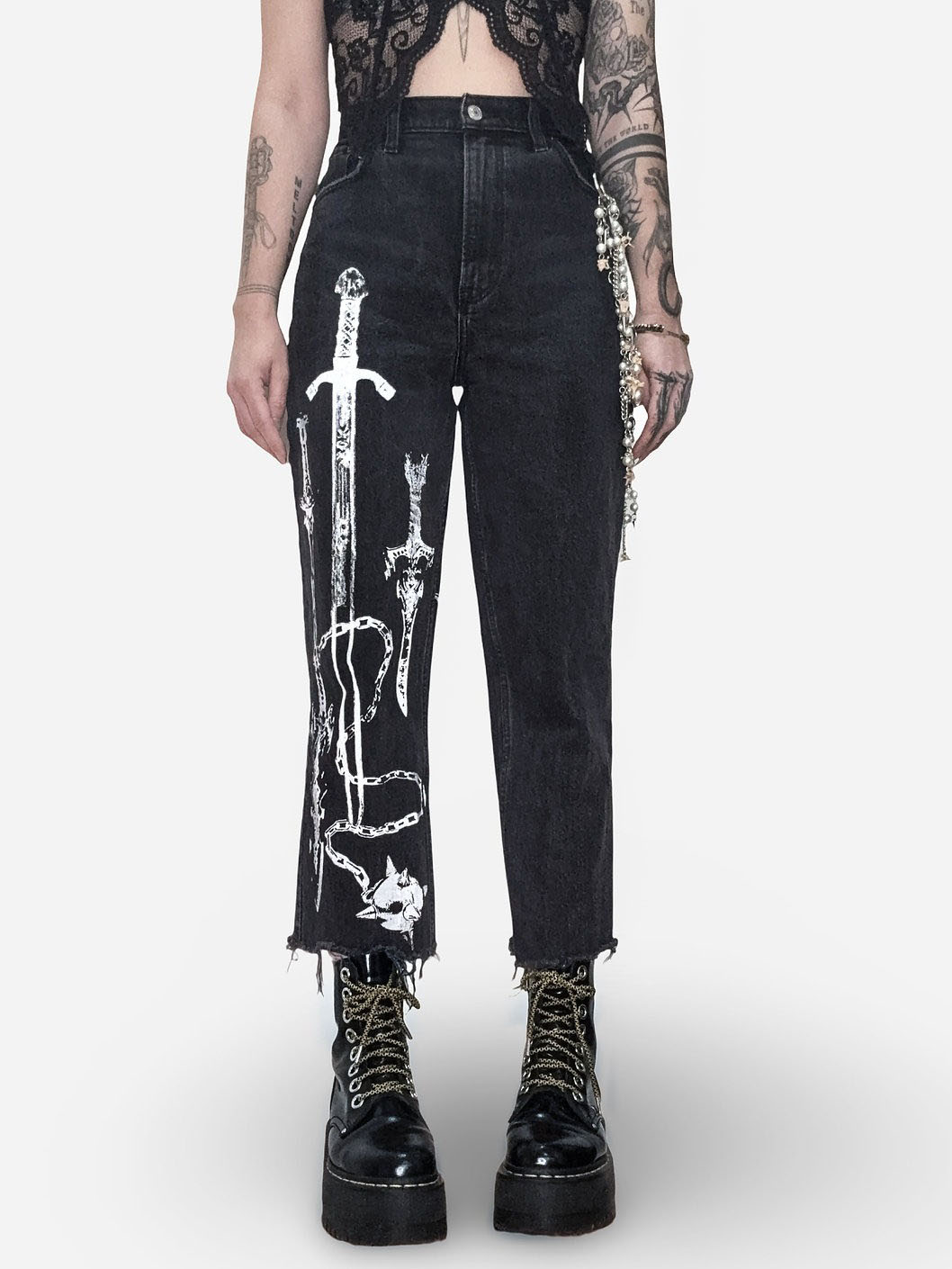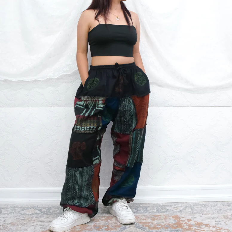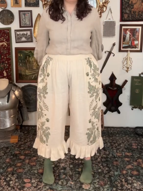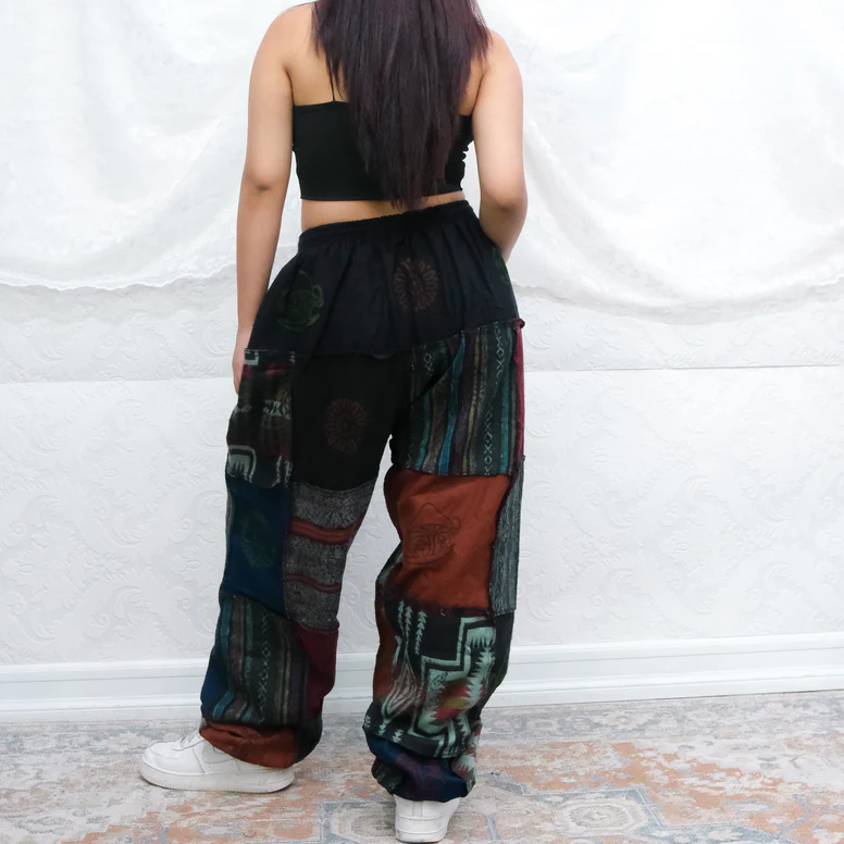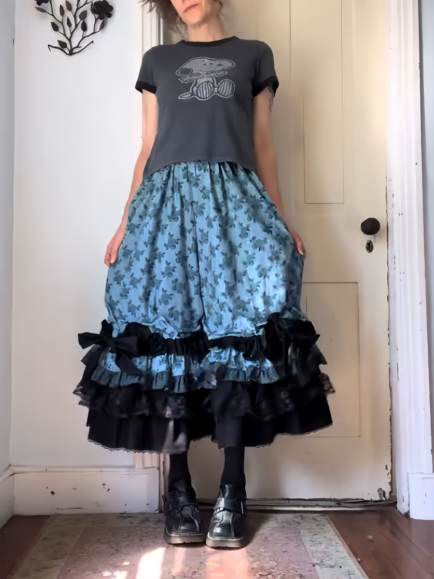 Gray Plaid Flannel/Floral Super Flared Wide Ruffle Maxi Bloomers Pants