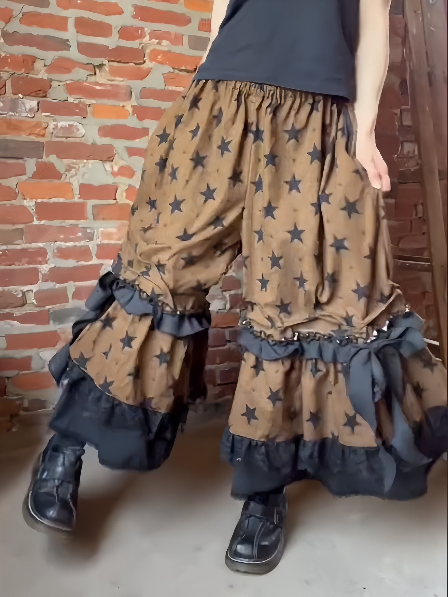 Brown Stars/Black Wide Ruffle Bloomers Pants