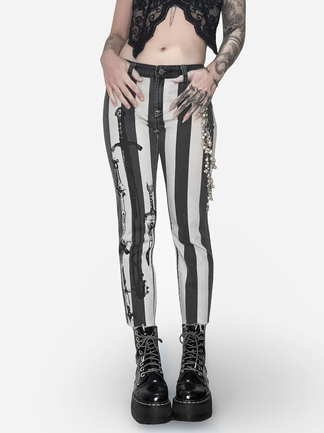 Stripes/Floral Super Flared Wide Ruffle Maxi Bloomers Pants