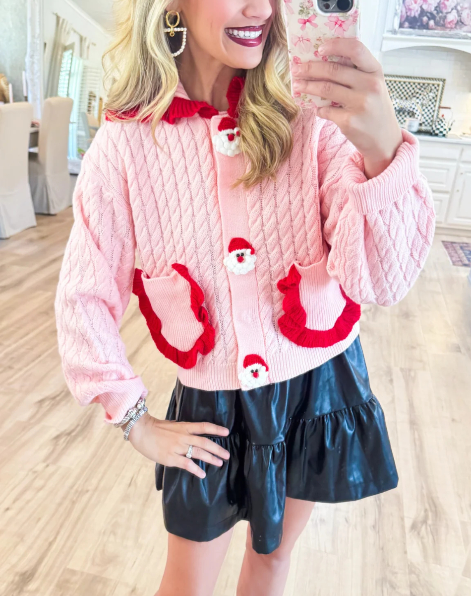 Pink and Red Santa Knit Cardigan