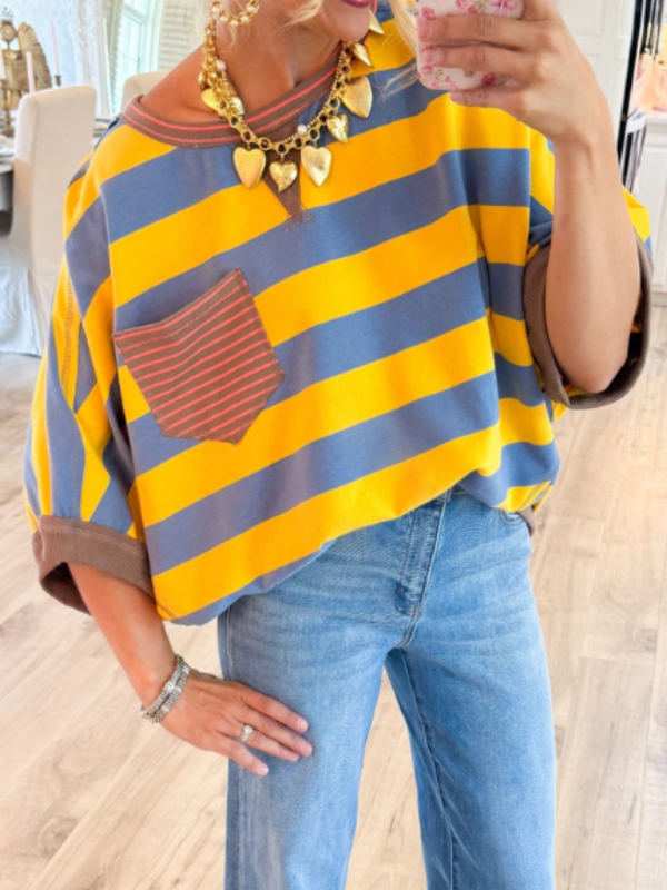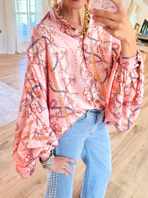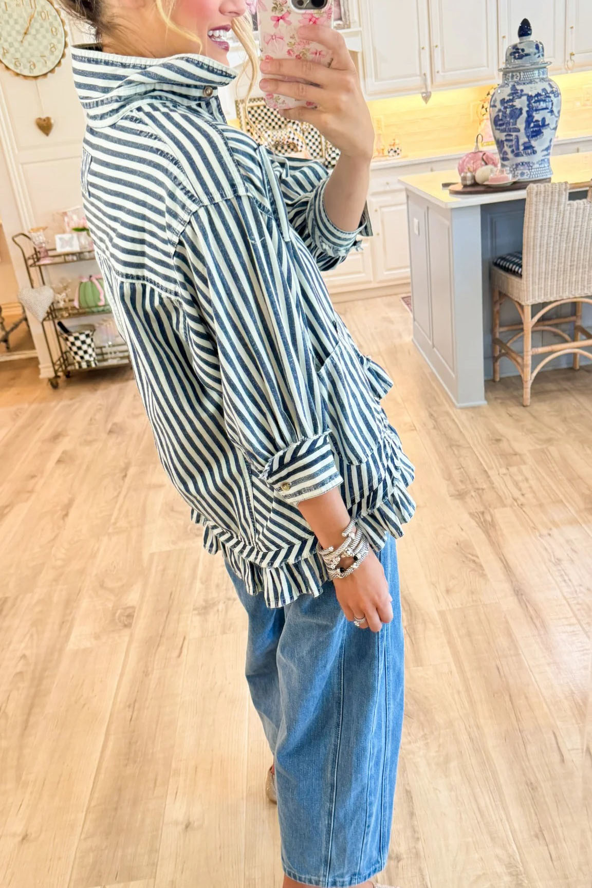 The Shipley Stand-Up Collar Top in Blue White Abstract
