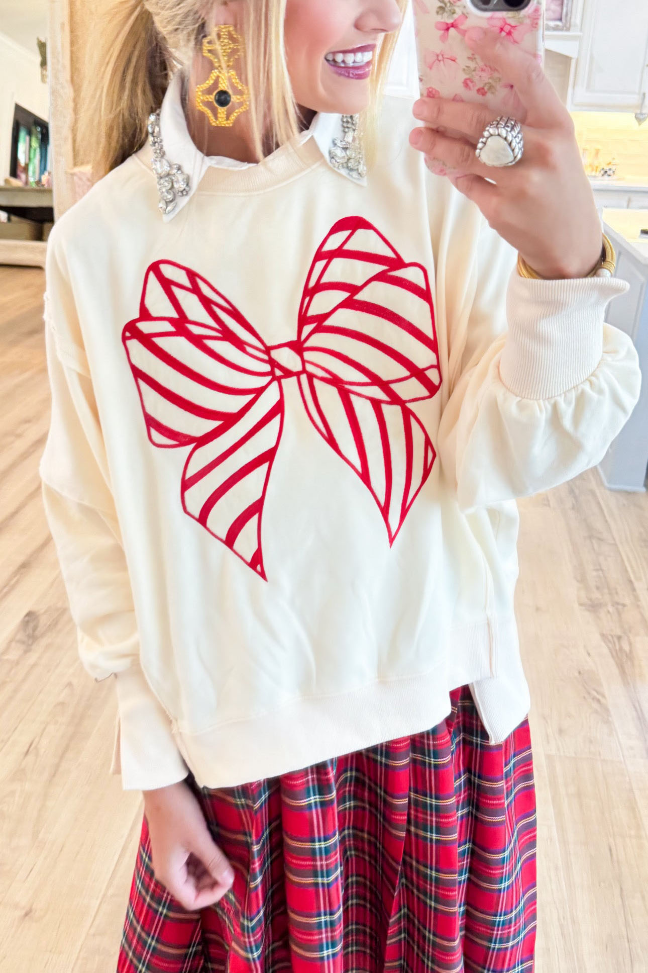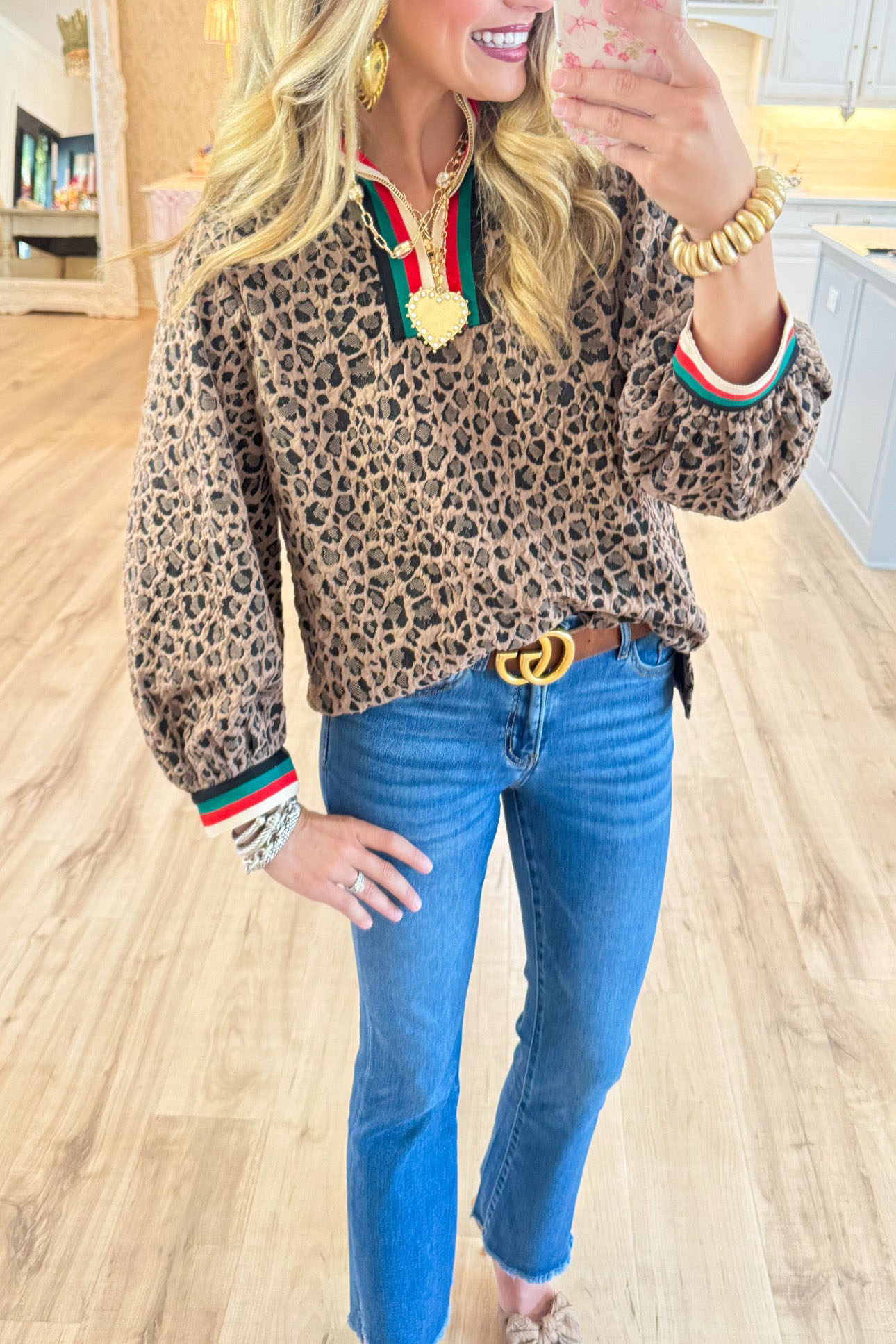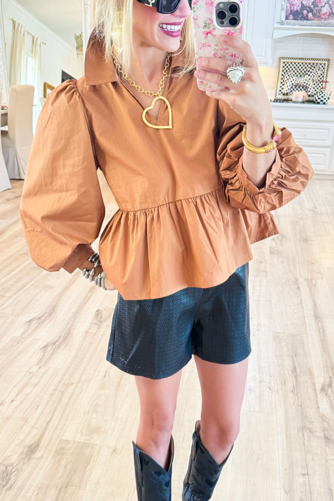 Red Plaid Puff Sleeve Ruffle Trim Blouse