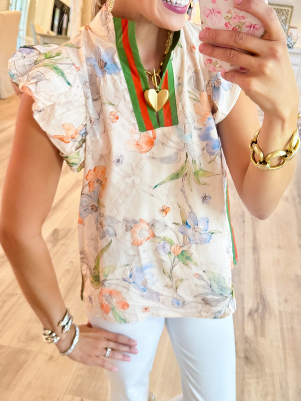 The Poppy Puff Sleeve Top in Lime Floral Hand-Block
