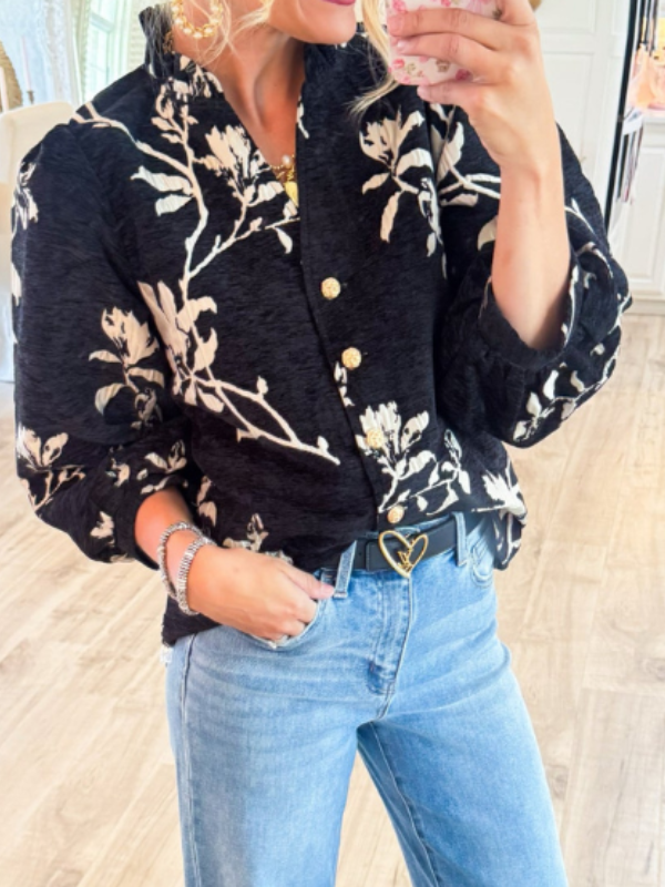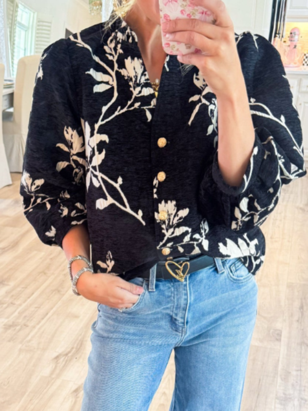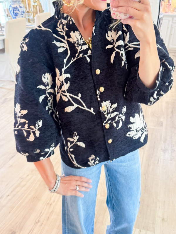 Black Button Down Floral Top