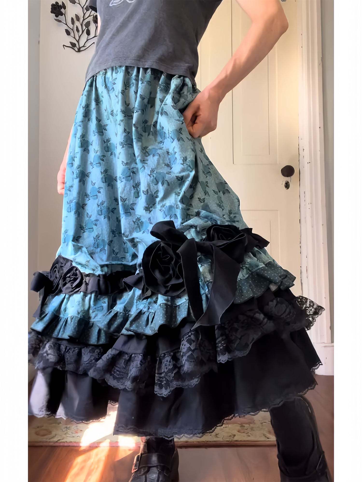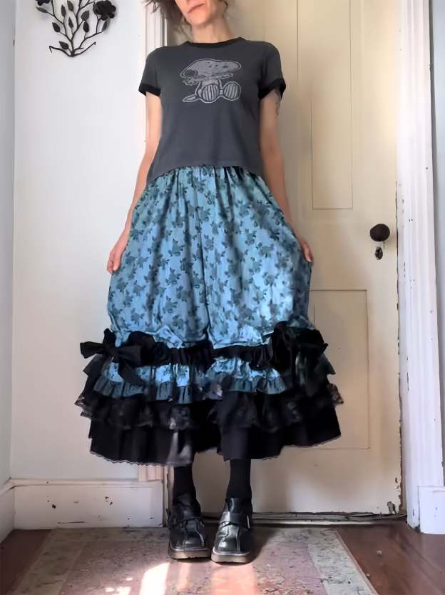 Blue Floral Mini Stars Ruffly Bowtie Bloomers Pants
