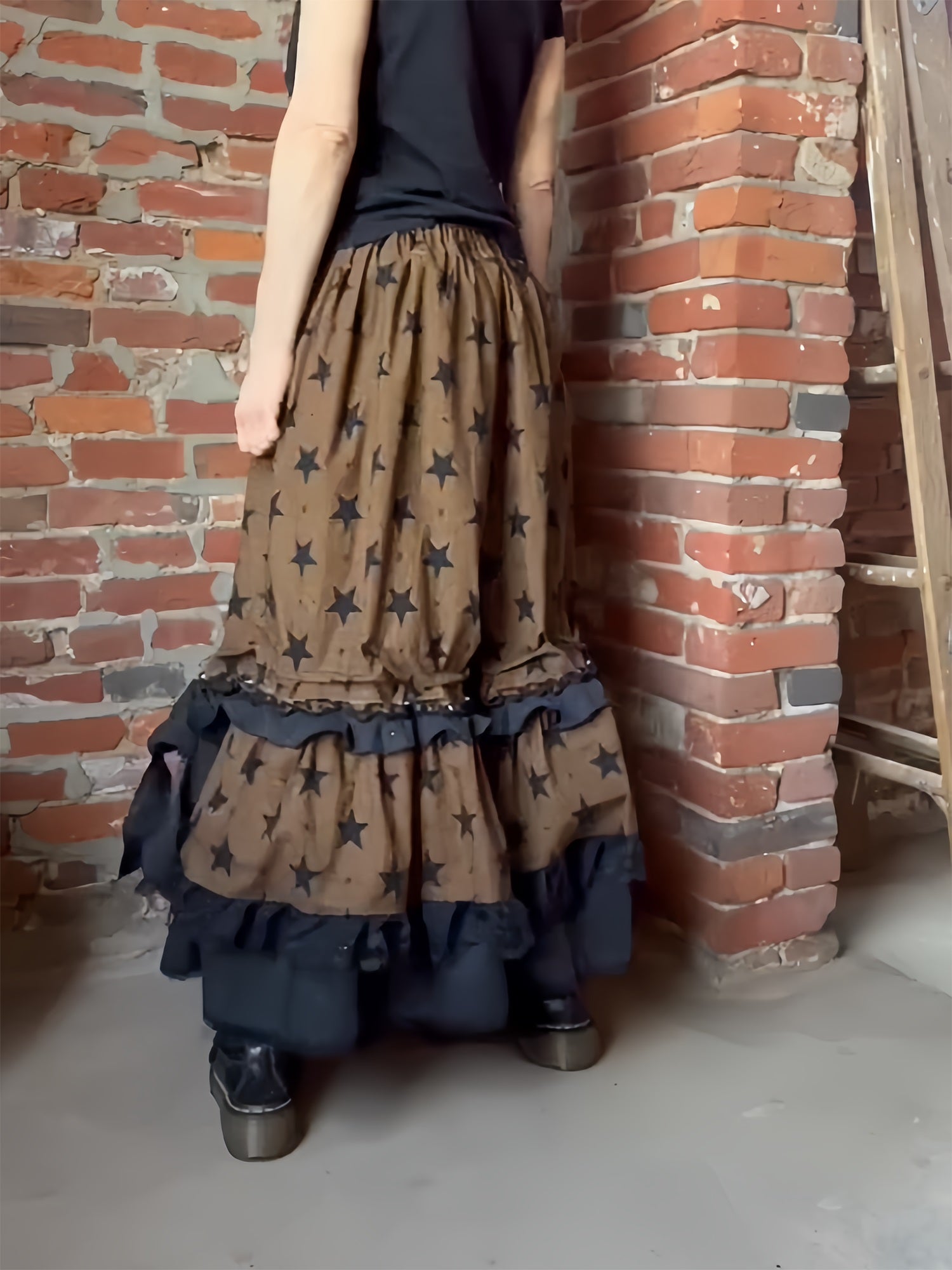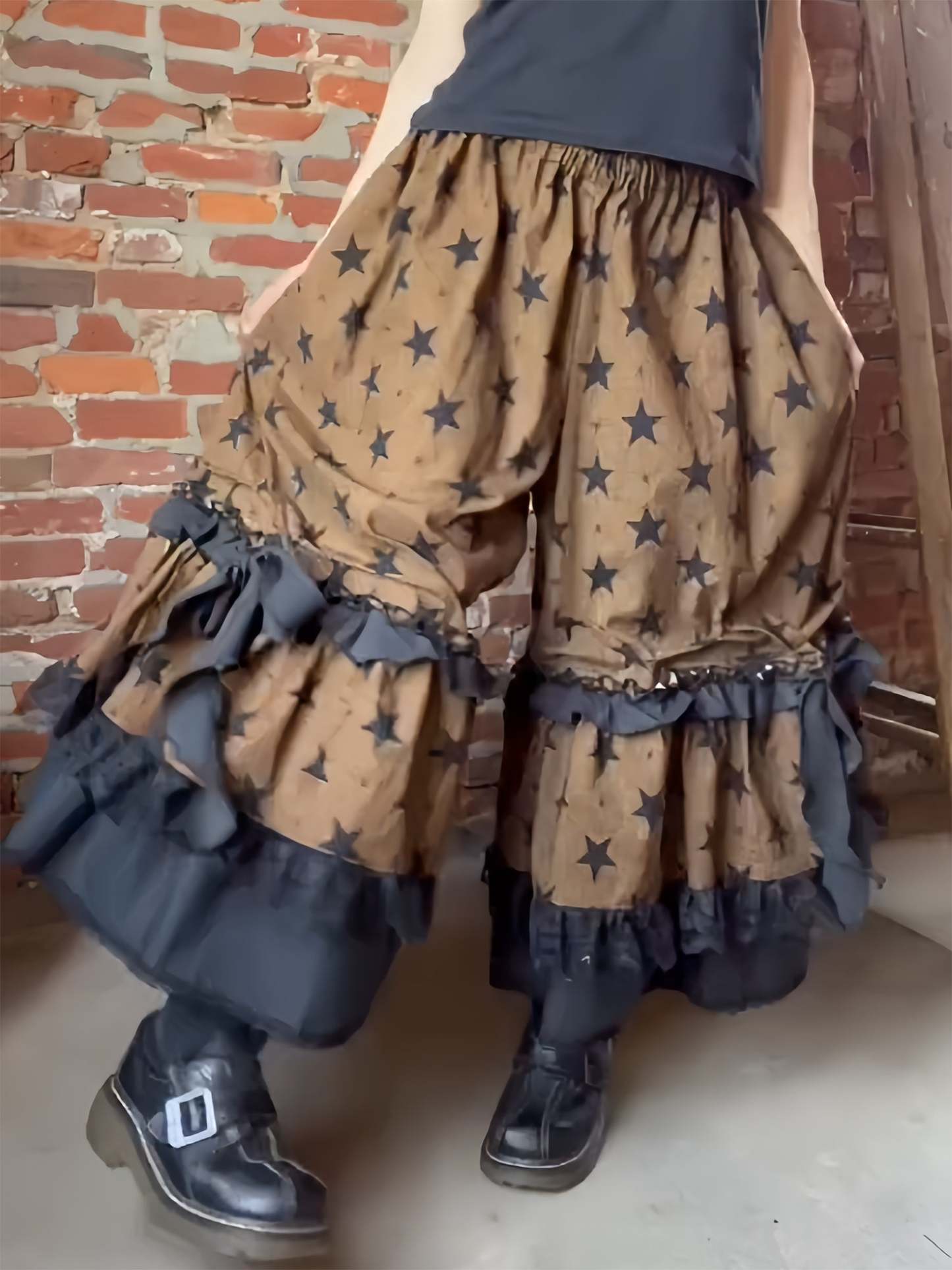 Brown Stars/Black Wide Ruffle Bloomers Pants