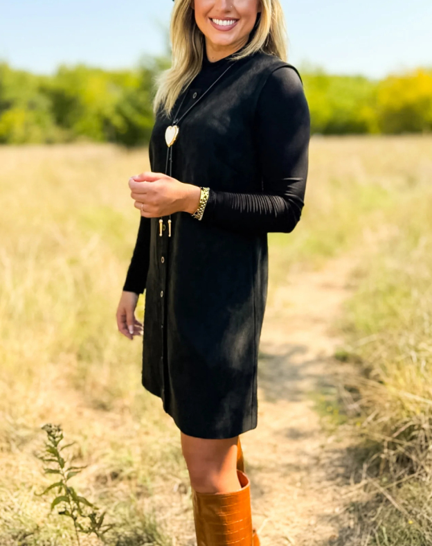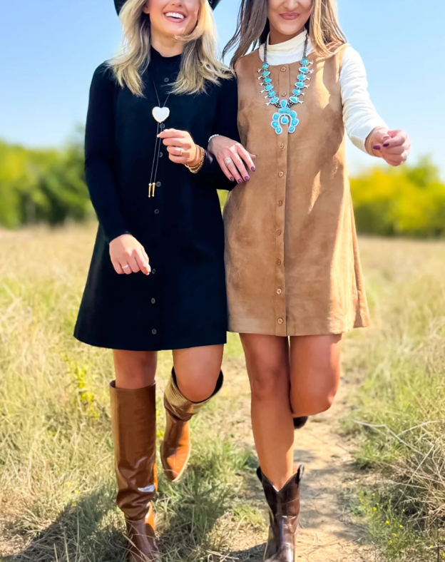 Button suede dress