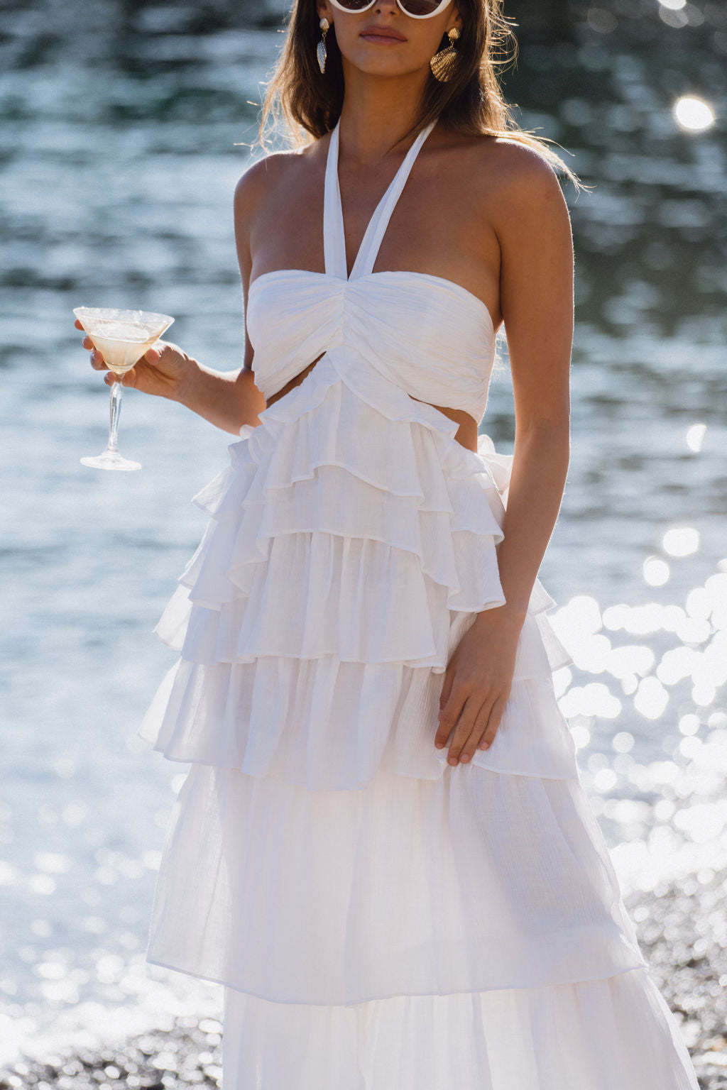 Chateau White Ruffle Maxi Dress