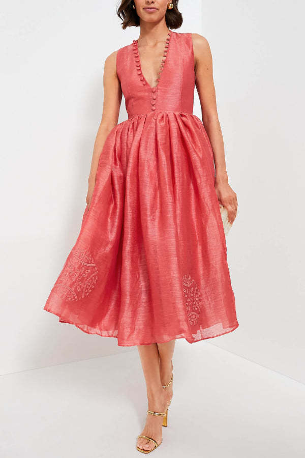 Exquisite Embroidered V-Neck Slim Midi Dress