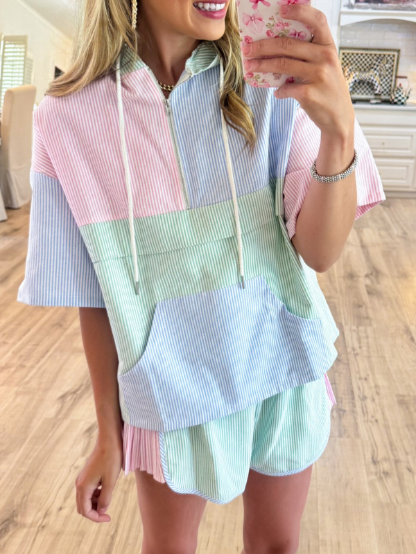 We are glad you clicked our Heather Stripe Hoodie because we really like its casual vibe! The Hoodie design makes it a great choice for any fashion girl.
