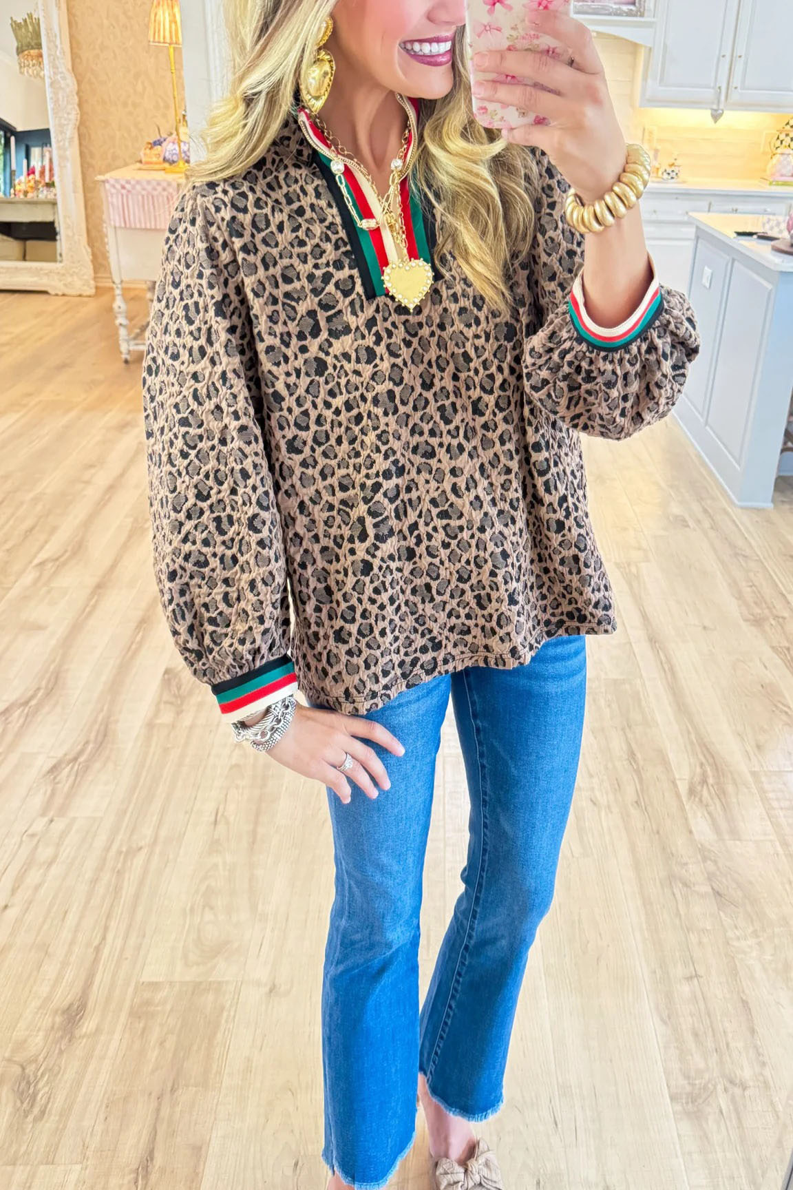 Leopard Textured Zip Up Top