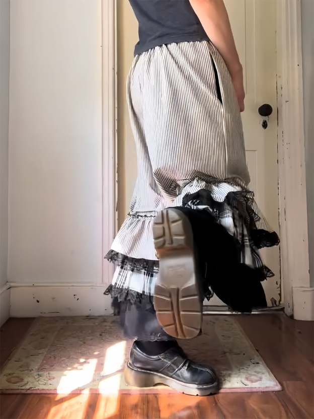 Light Grey Striped Mini Stars Ruffly Bowtie Bloomers Pants