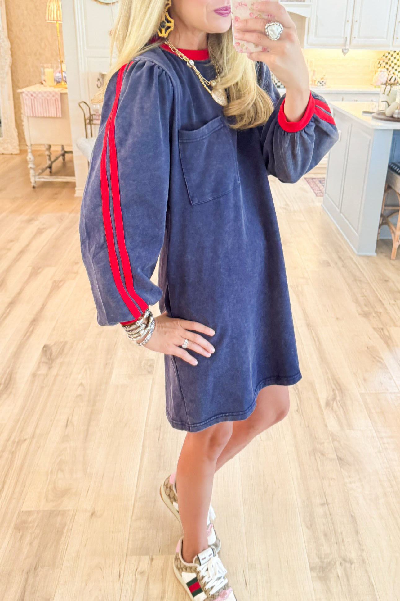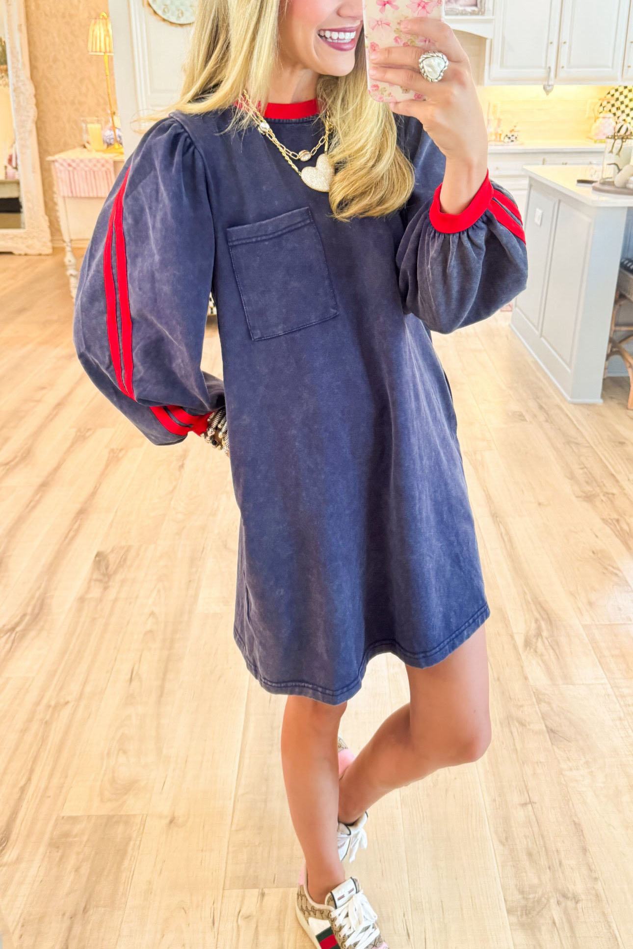 Navy Washed Contrast Sweatshirt Dress