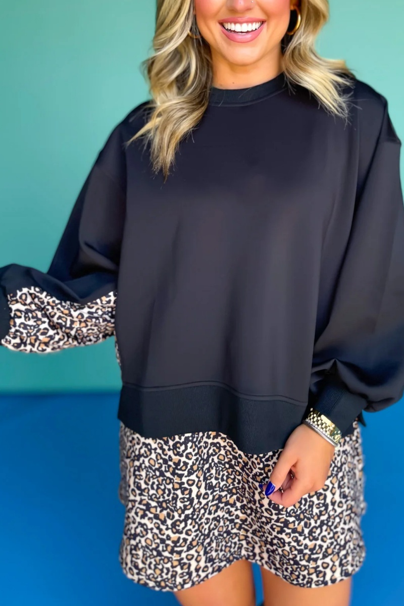 Crew Neck Printed Panel Scuba Set In Black Animal