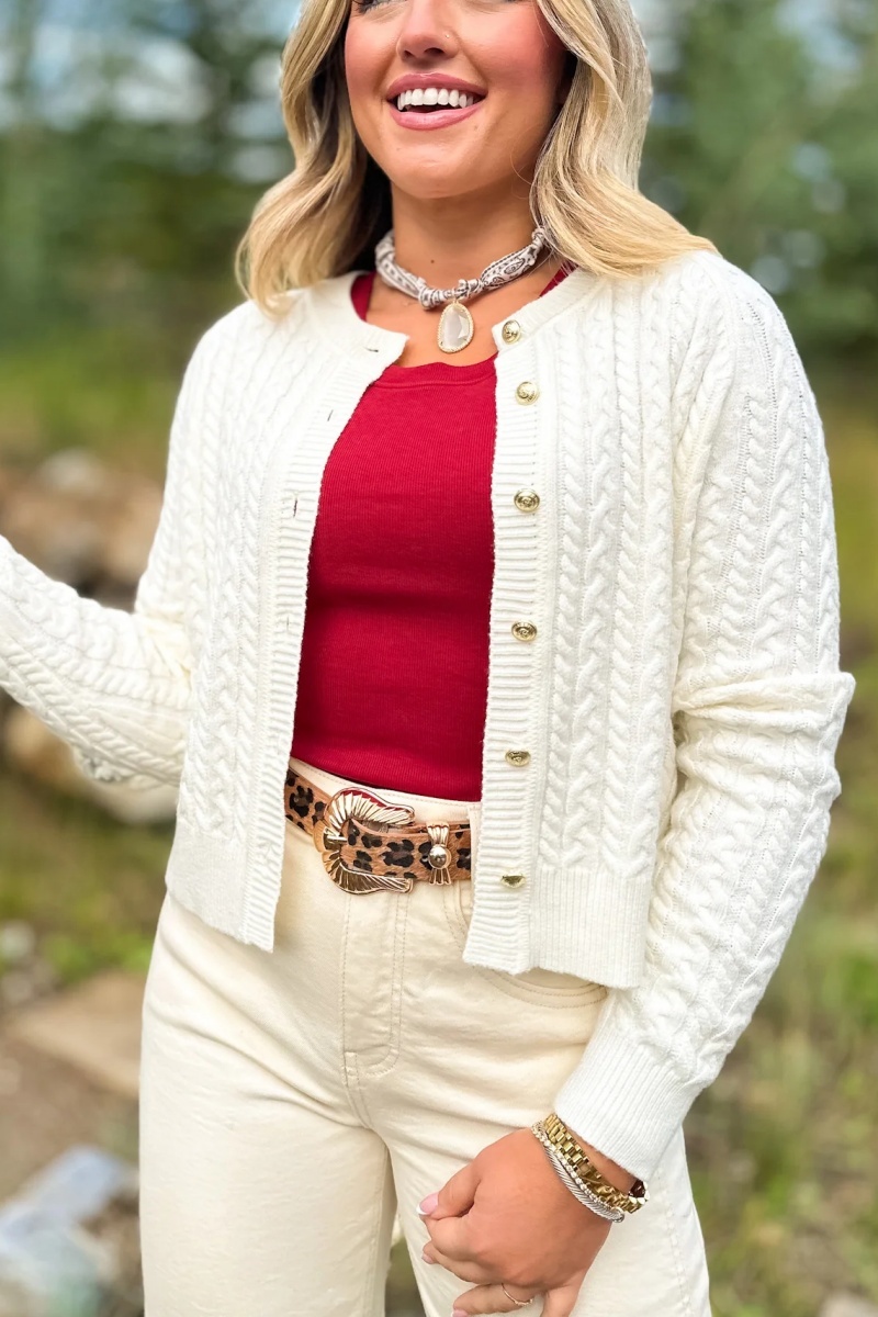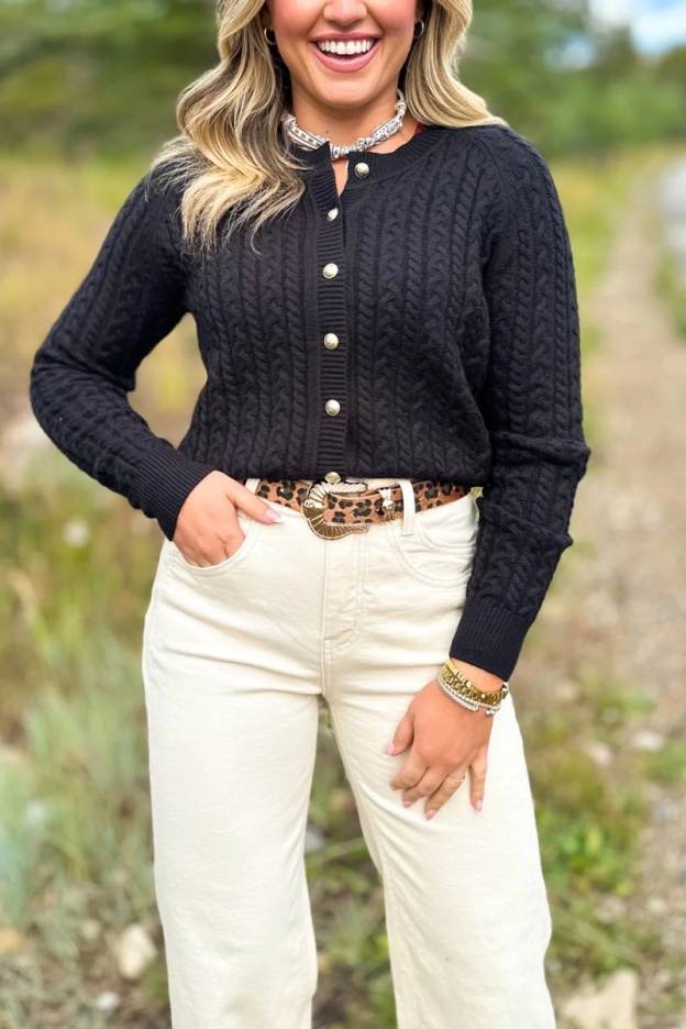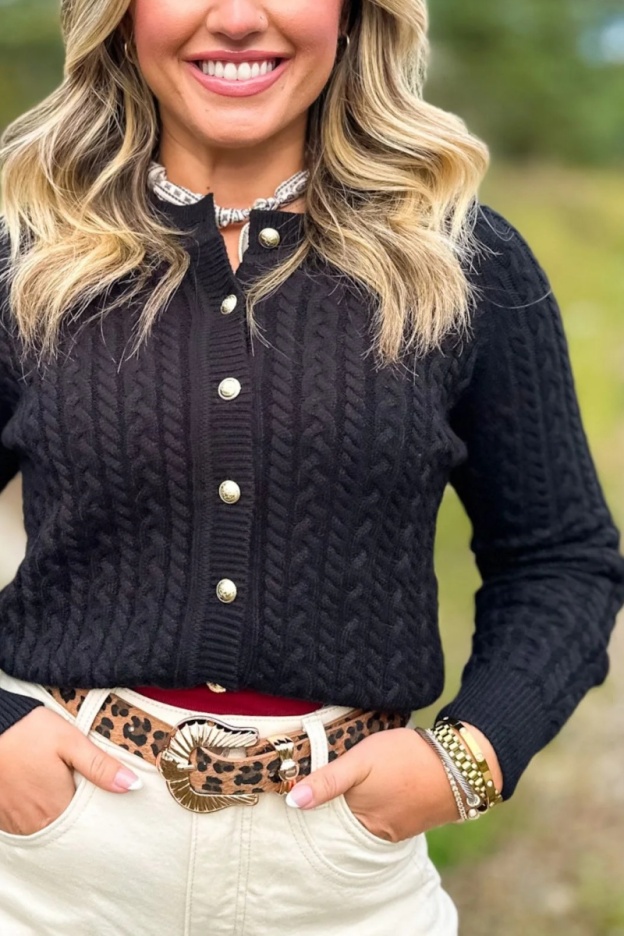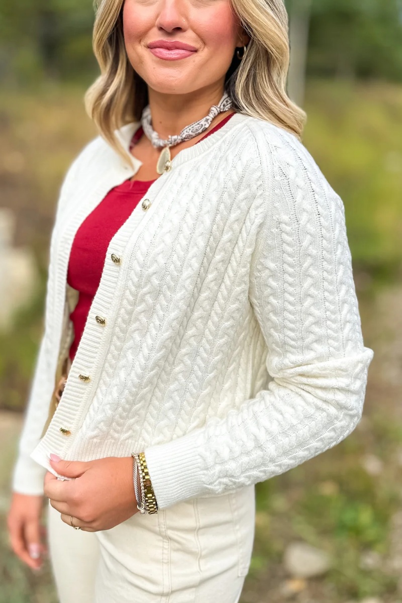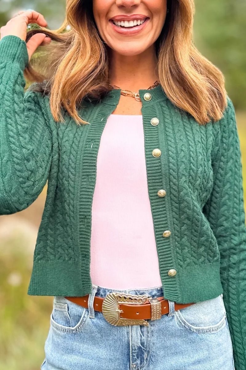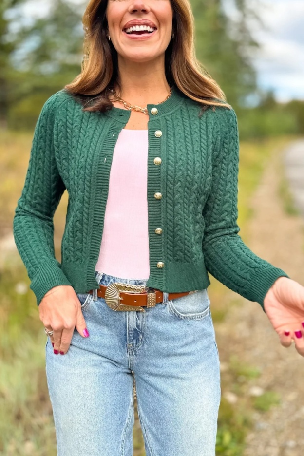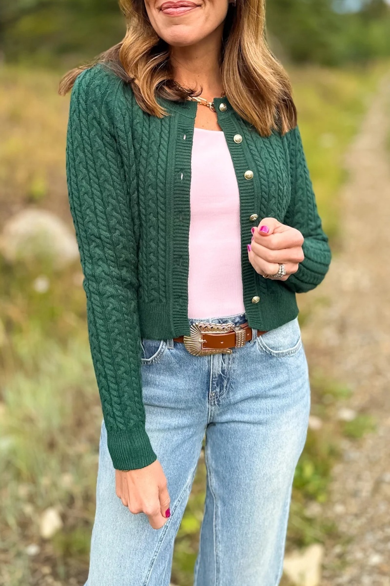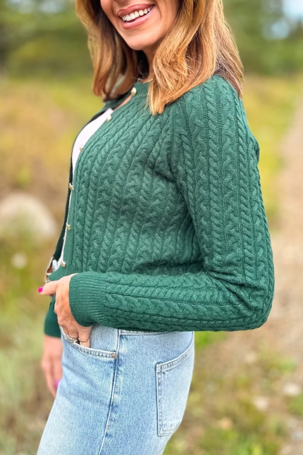 Lizzy Cable Knit Cardigan In Hunter